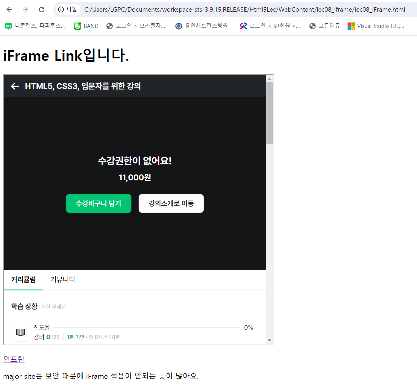 <p><a href="https://www.inflearn.com/course/lecture?courseSlug=html5-css3-%EC%9E%85%EB%AC%B8&unitId=67156" target="show_iframe">인프런</a></p>